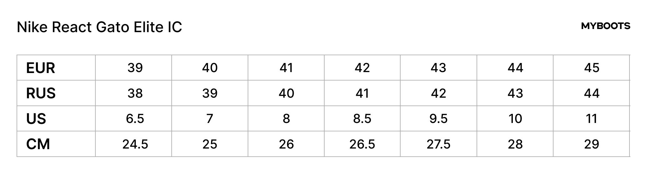 Выбирайте размер согласно таблице размеров выше.